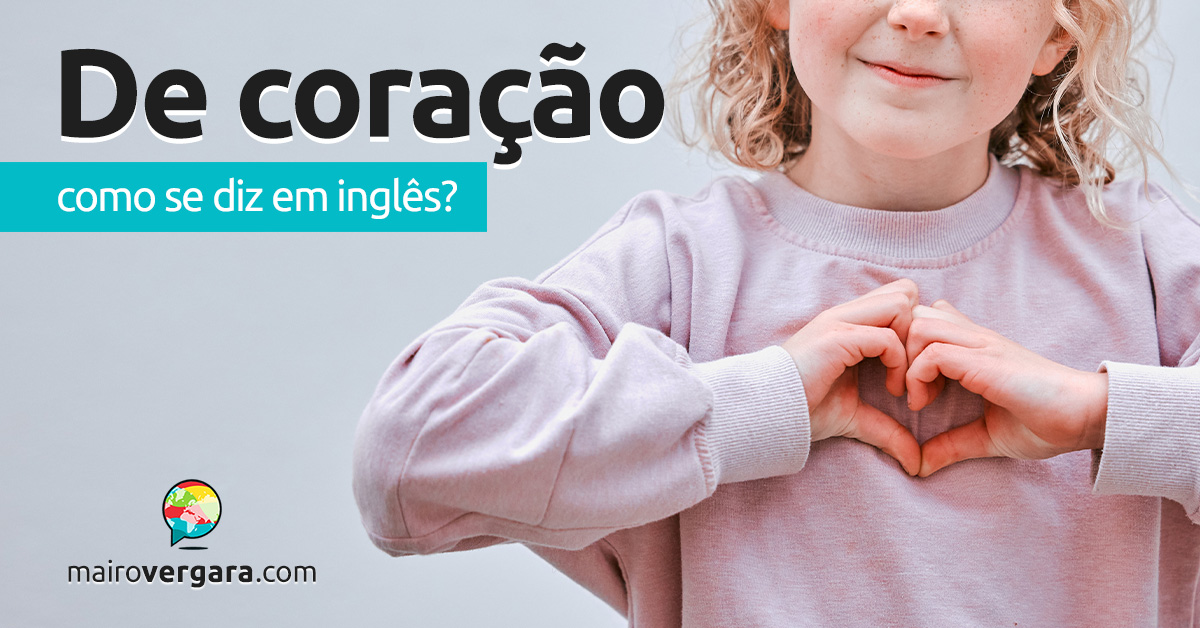 “De coração” é aquilo que dizemos ou fazemos com sinceridade, sem reservas, com todo entusiasmo. No inglês, temos uma expressão parecida que, embora não seja uma equivalência perfeita, serve frequentemente como tradução: with all one’s heart, “com todo o seu coração”. Curiosamente, a expressão só existe no superlativo – é improvável que você veja alguém usar with one’s heart (sem all).