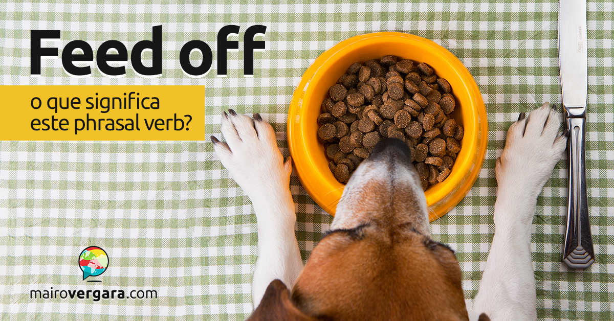 Feed off é um phrasal verb bem útil, embora tenha apenas um sentido. O verbo feed significa primordialmente “alimentar”, “nutrir”, “suster”. A funcionalidade de feed off, por sua vez, não é senão a mesma do verbo feed regido pela preposição off (de). Logo, feed off significa “alimentar-se de”, “suster-se de”, etc., seja de maneira literal ou figurada, como você verá nos exemplos.