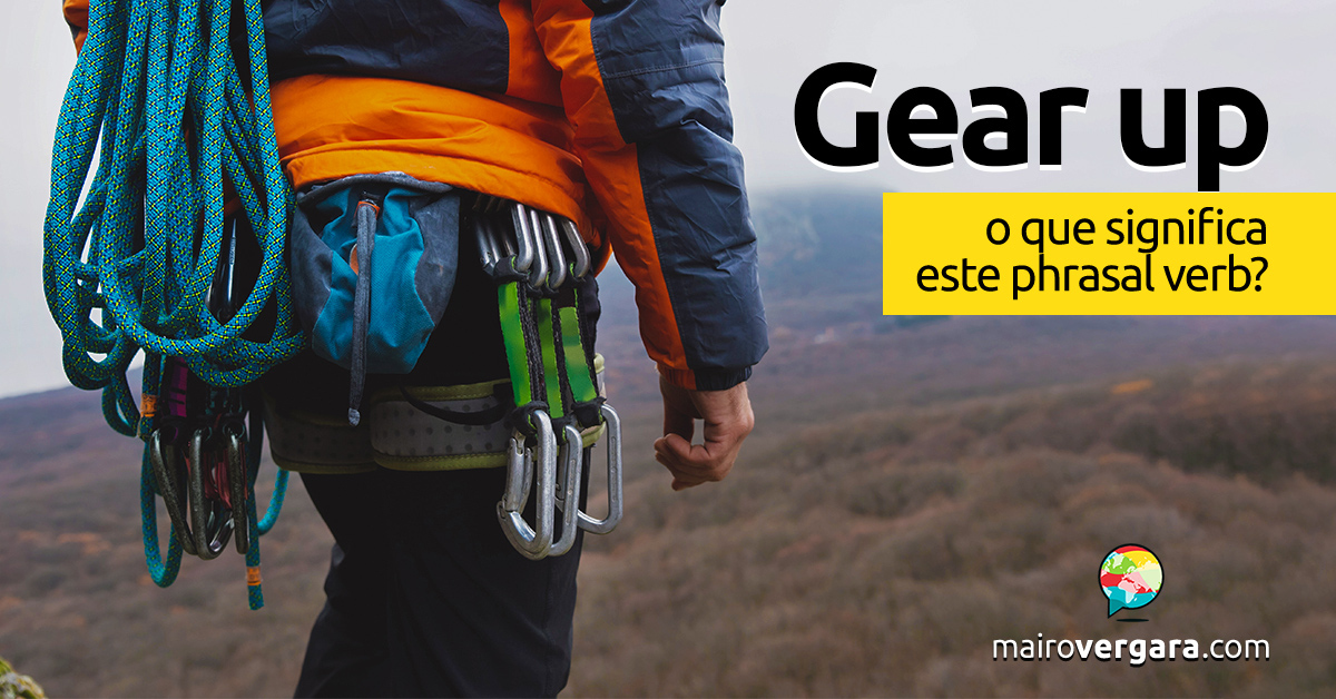 Gear (pronuncia-se mais ou menos como guí-er) é uma palavrinha repleta de usos: significa “engrenagem” ou “marcha” (de um veículo) — mas também “equipamento”. Foi deste último sentido que se derivou o verbo gear up, que significa nada mais, nada menos do que “preparar-se”.