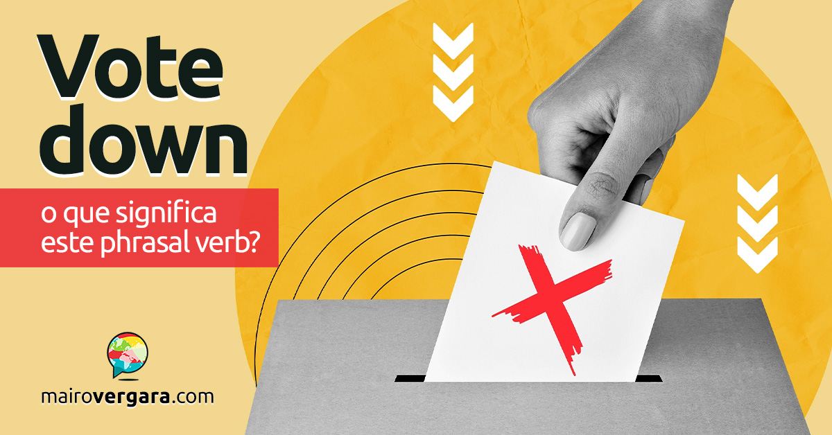 Já no inglês, no entanto… você já viu onde estamos chegando, aposto. Vote down. To vote something down significa justamente “rejeitar alguma coisa por meio de voto”. Viu quantas palavras precisamos usar em português? Já o inglês resolve o problema de uma vez por todas criando um phrasal verb: pega o verbo to vote, acrescenta a preposição down e, Bob’s your uncle, problema resolvido!